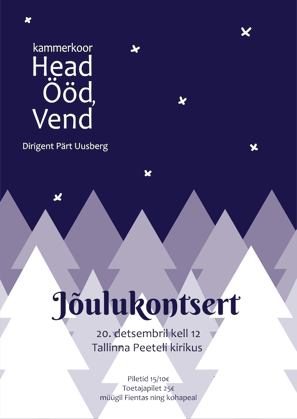 Kammerkoor Head Ööd, Vend jõulukontsert “Jõulud jõudvad”, 14. detsembril kell 19 Tallinna Rootsi-Mihkli kirikus.
